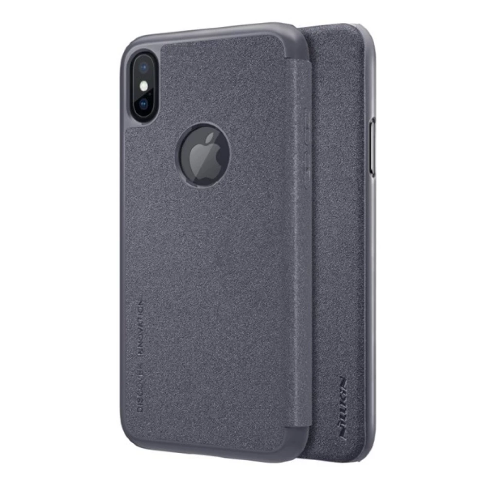 NILLKIN iPhone XS 5.8 NILLKIN SPARKLE műanyag telefonvédő FLIP, logó kivágás, FEKETE