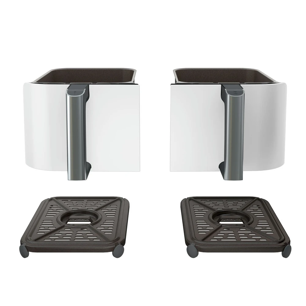 Különböző ételek, különböző idők és különböző programok: mindkettő egyszerre kész! A 2 különálló sütőfiókkal szinkronizálhatja vagy összehangolhatja a sütési programokat és időket a végtelen sokoldalúságért. Készítsen akár 25%-kal többet.* Az extra nagy, 9,5 literes űrtartalom több mint 8 személy számára elegendő. Mindegyik fiókba belefér egy 2 kg-os csirke vagy 1,4 kg hasábburgonya.