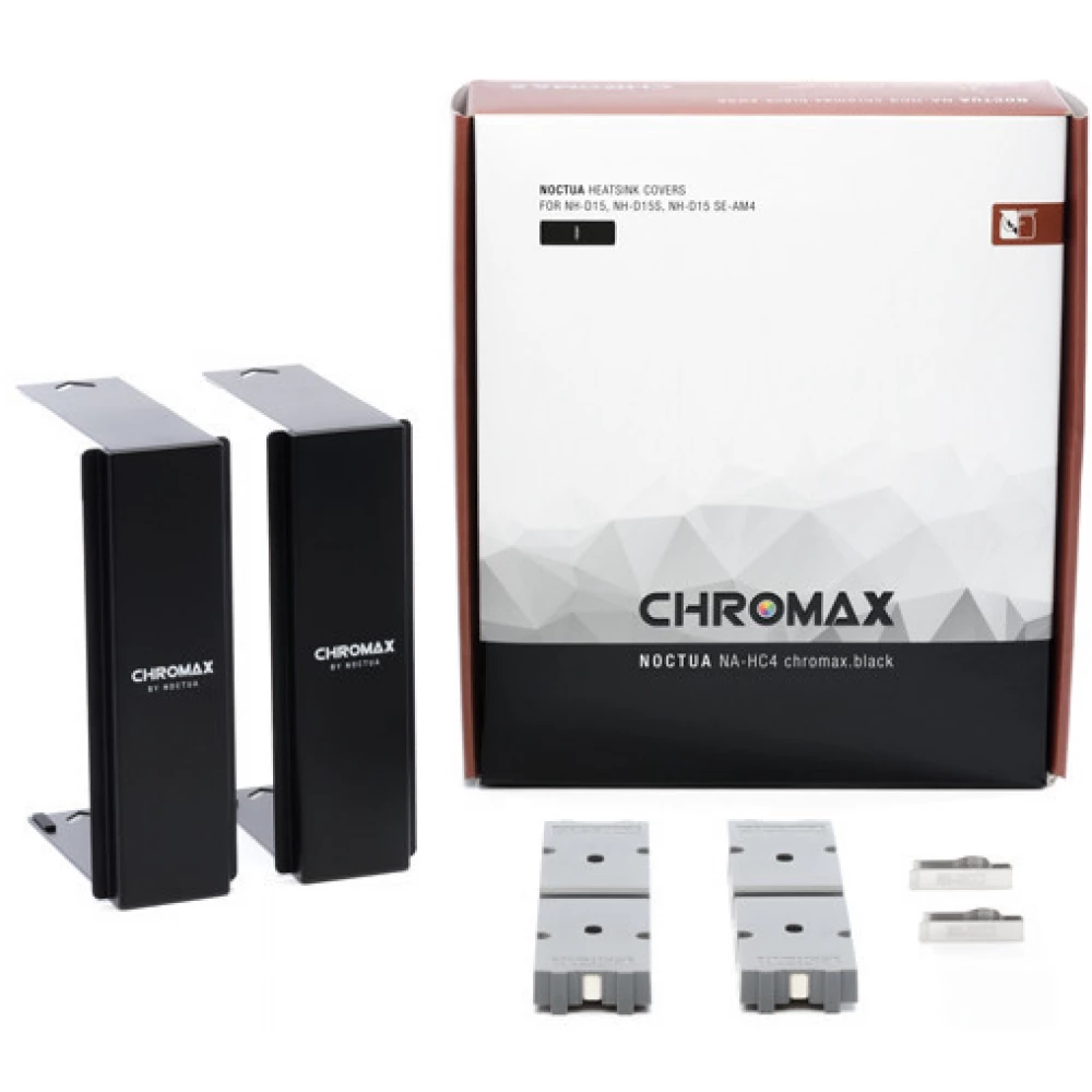 NA-HC4 hűtőborda díszítő lemez a NH-D15 sorozat hűtőihez. A NA-HC4 panel 5mm el megemeli a hűtő magasságát (160 mm -> 165 mm) és szélességét 3mm-el (150 mm -> 153 mm). Szín: fekete. A szett két darab takaró lemezt tartalmaz.