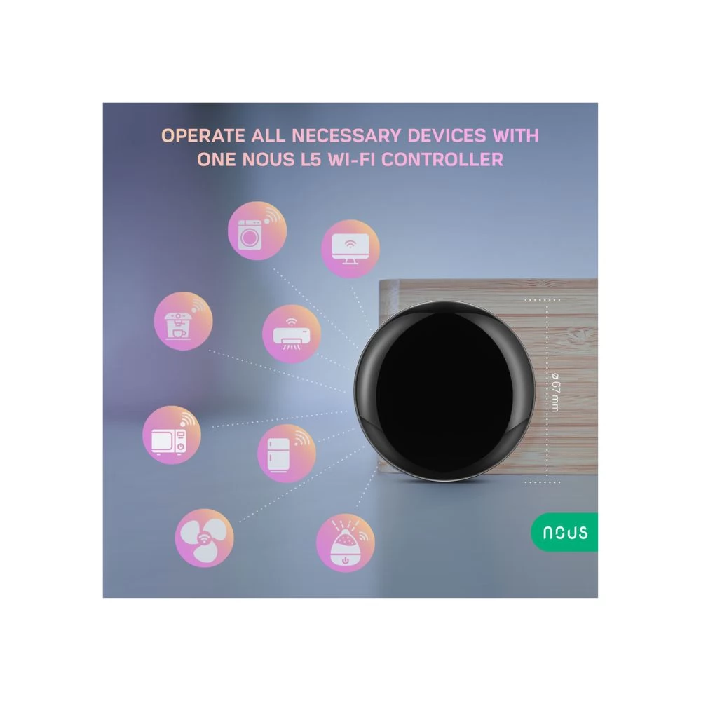 A NOUS L5 lényegében egy Wi-Fi-s okos univerzális távirányító, mely lehetővé teszi az otthoni IR (infravörös) eszközök könnyű vezérlését, mint például a TV-k, légkondicionálók, ventilátorok és egyéb eszközök. Ez a modern és elegáns távirányító bármely IR eszközt okos eszközzé alakít, így az otthona még kényelmesebb és intelligensebb lesz.