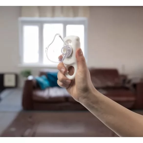 Hordozható inhalátor a kéz nélküli, hatékony és teljesen kényelmes terápiához.