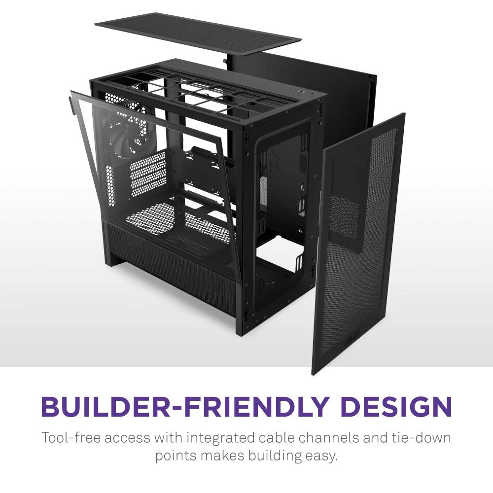 A H3 Flow micro-ATX ház a helytakarékos kialakítást nagy teljesítménnyel ötvözi. Teljes méretű komponensek támogatására tervezték, ultra-finom hálós panelekkel és szellőző tápegység-burkolattal rendelkezik, hogy a működés során végig folyamatos, optimalizált légáramlást biztosítson. A ház támogatja a hátsó csatlakozású alaplapokat (ASUS BTF és MSI Project Zero)
