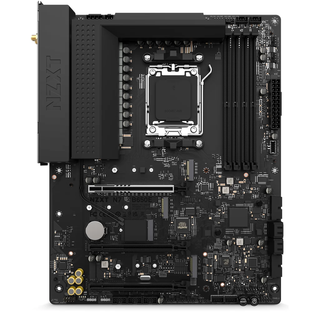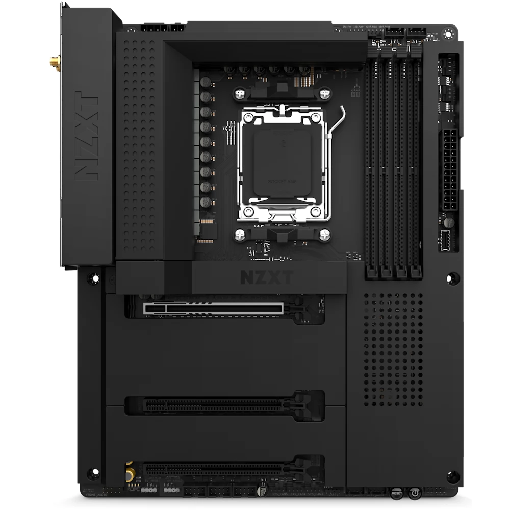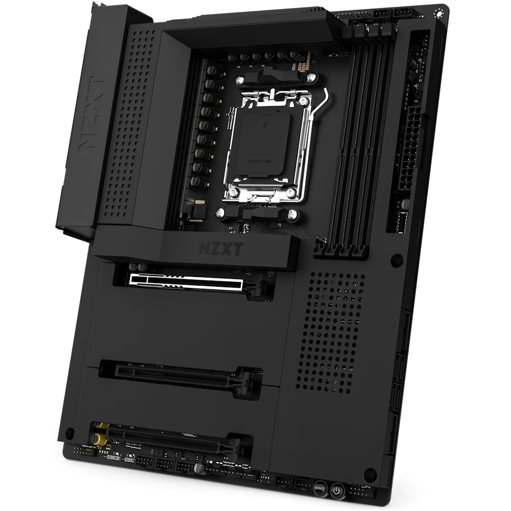 NZXT N7 B650E matt fekete típusú alaplap Socket-AM5 foglalattal, AMD B650 chipsettel, Processzorban integrált videokártyával, 4 darab DDR5 memóriafoglalattal (max 128GB). 8 darab USB 2.0 port, 8 darab USB 3.0 port, 1 darab USB 3.1 port.