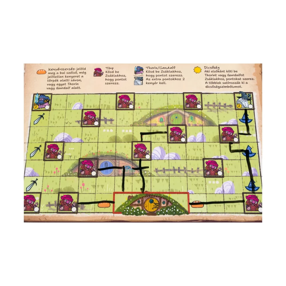 A hobbit - Oda és vissza társasjátékban te magad alakíthatod Zsákos Bilbó és a törpök kalandját. A játék során a célod, hogy eljuss a Magányos Hegyhez, visszaszerezd a kincset, és legyőzd Smaugot. Az úton számos kihívással kell szembenézned: elkerülni a trollokat, megküzdeni a koboldokkal, megoldani rejtvényeket és átélni olyan kalandokat, amelyek örökké emlékezetesek maradnak.