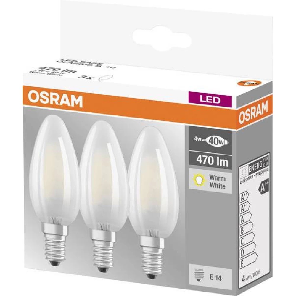 4 wattos (40 wattnak megfelelő) E14 foglalatú 470 lumen 2700K színhőmérsékletű fényforrás 3 darabos kiszerelés.
