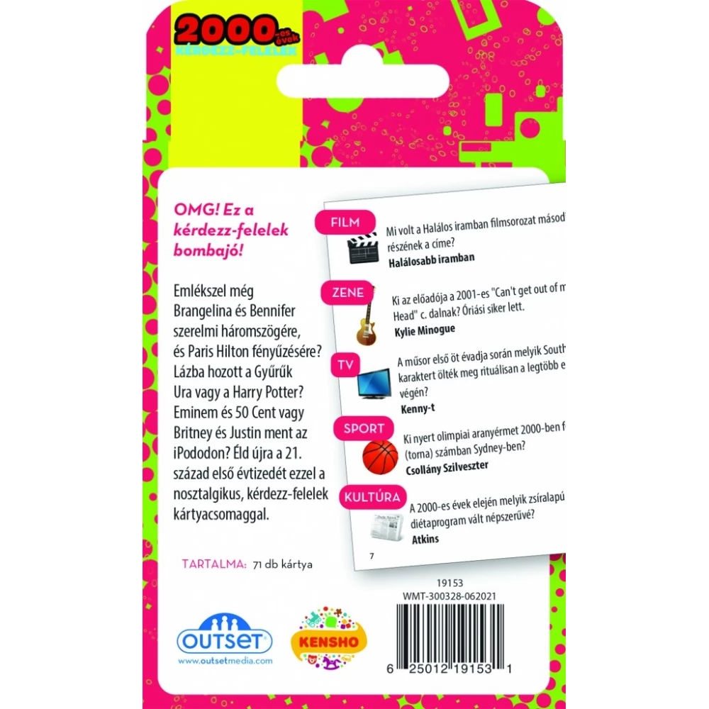 Emlékszel még Brangelina és Bennifer szerelmi háromszögére, és Paris Hilton fényűzésére? Lázba hozott a Gyűrűk Ura vagy a Harry Potter? Eminem és 50 Cent vagy Britney és Justin ment az IPododon? Éld újra a 21. század első évtizedét ezzel a nosztalgikus, kérdezz-felelek kártyacsomaggal!