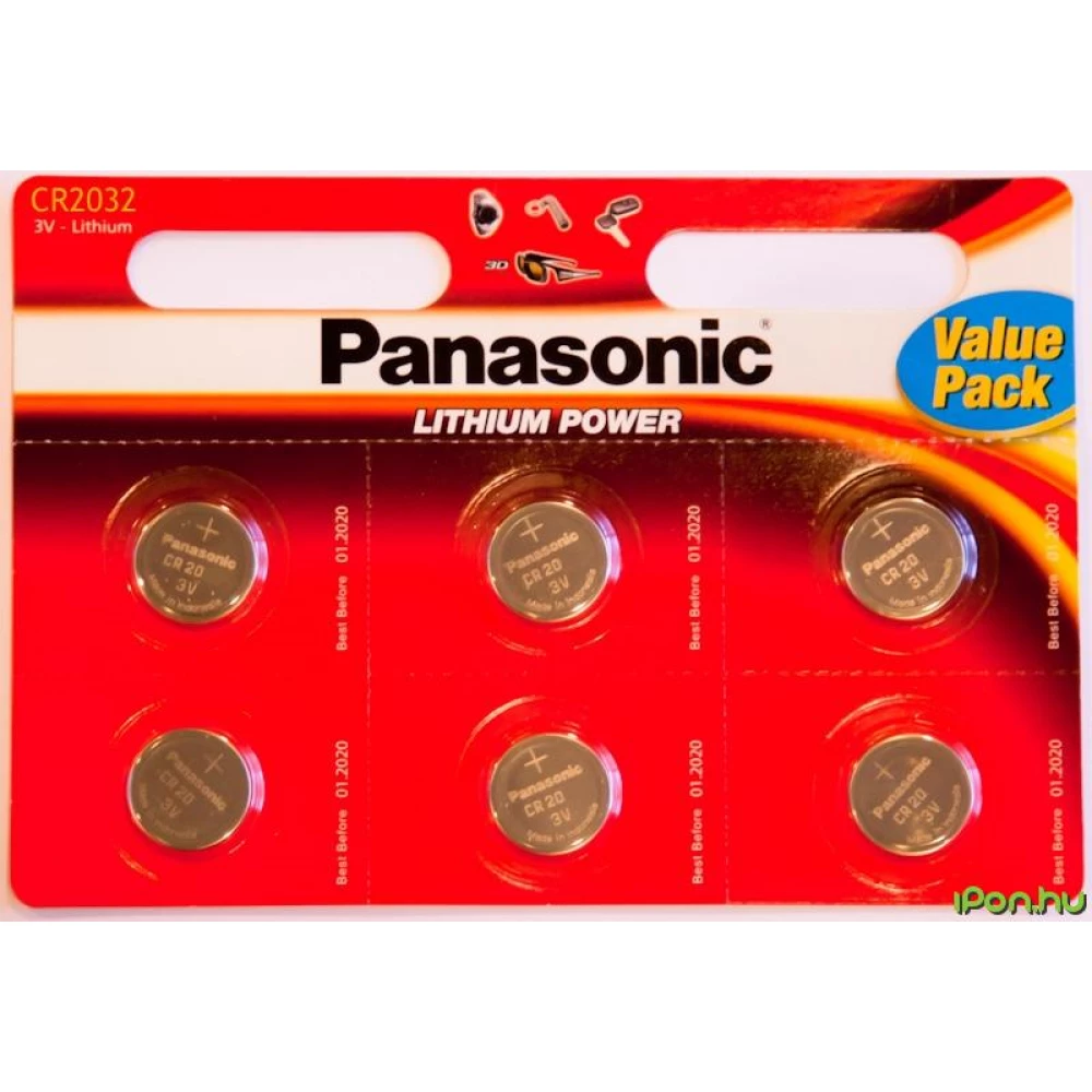 PANASONIC CR2032 3V gombelem (CR) 6db