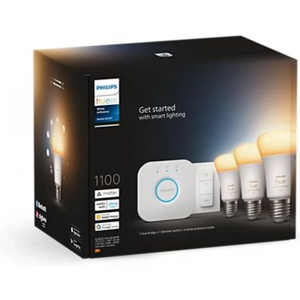 Élvezze a megnyugtató és stimuláló fénybeállításokat, vagy hozzon létre saját rutinokat minden előzetes konfiguráció nélkül a Hue White Ambiance E27-es kezdőkészlettel! A készlet tartalmaz egy Hue Bridge-et, 3 okos fényforrást, amelyek a fehér fény teljes spektrumában képesek működni, valamint egy Hue Dimmer switch fényerő-szabályozó kapcsolót.