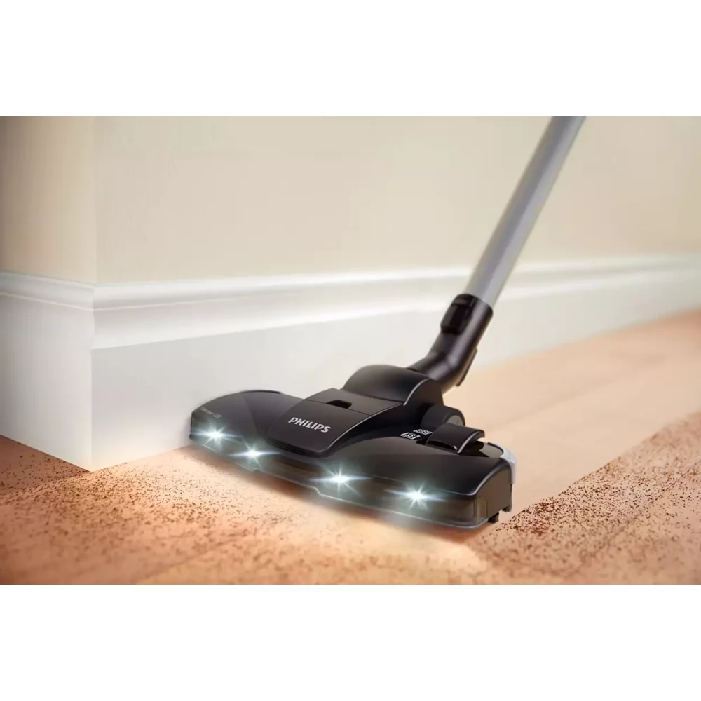 A TriActive+ LED fénye a keménypadlón lévő láthatatlan porszemeket is láthatóvá teszi, így biztosan nem fog egyetlen területet se kihagyni, így a lehető legalaposabb tisztítást biztosítja a letöbb keménypadlótípus esetén. Egy érzékelő automatikusan bekapcsolja a LED-világítást, amikor a szívófej használatban van, majd a használatot követően automatikusan kikapcsolja. A csomag 3 db AA elemet is tartalmaz.