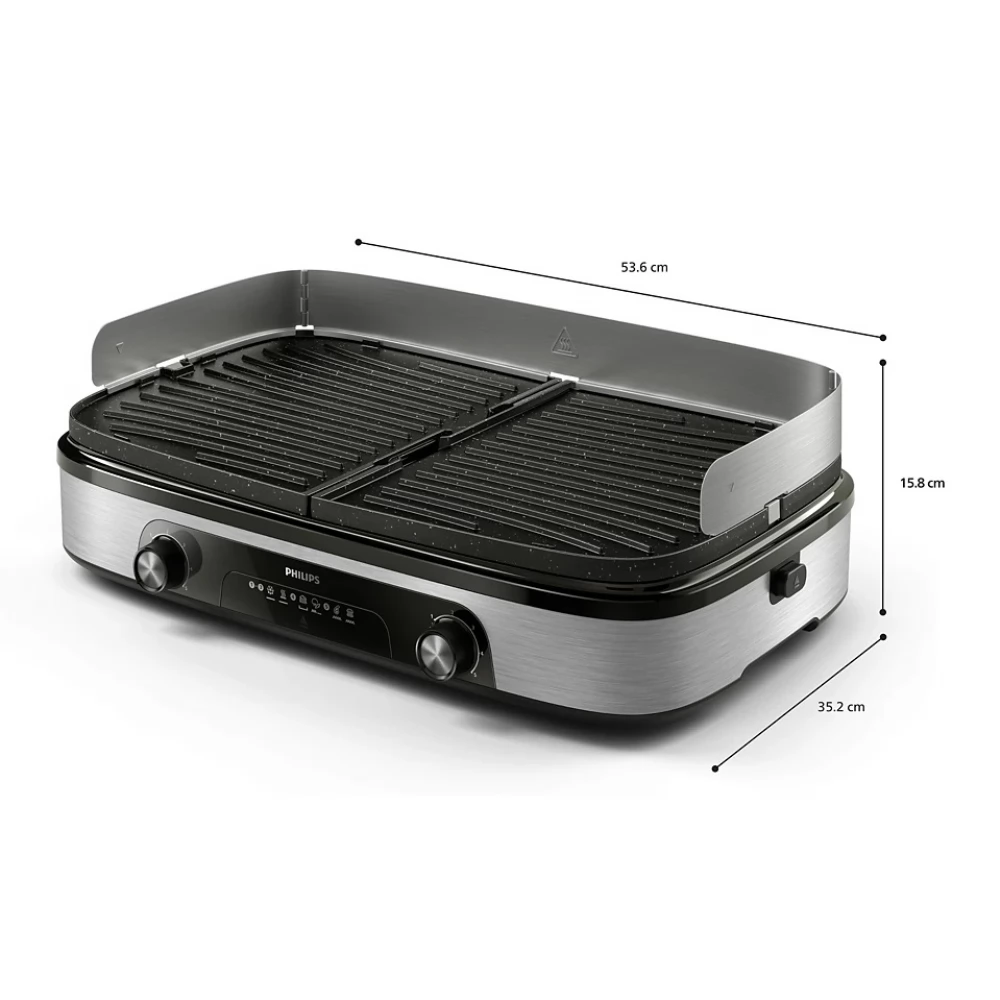 A két grillezőfelület lehetővé teszi a hőmérséklet egymástól független beállítását, így különböző ételeket süthet egyszerre.