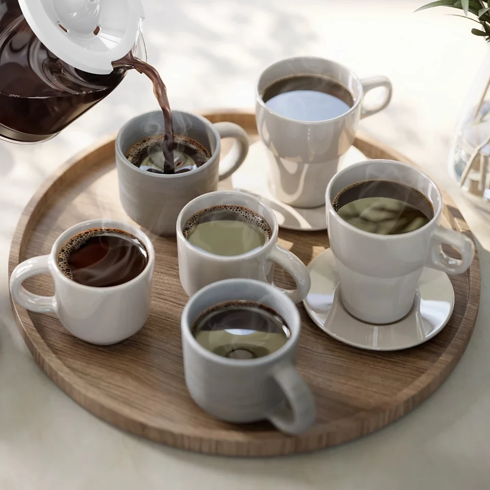 Teljes körű reggelizőkészlet vízforralóval és kávéfőzővel