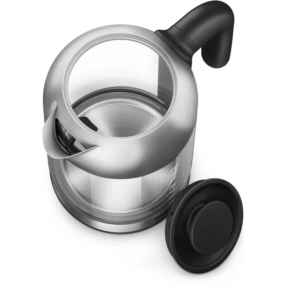 Az elegáns és intuitív érzékelőfény az átlátszó üvegalapba van beépítve, hogy mutassa a vízforraló bekapcsolt állapotát.