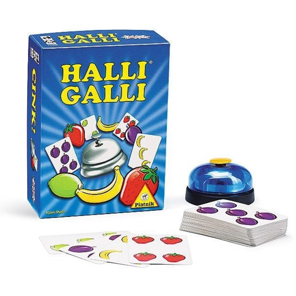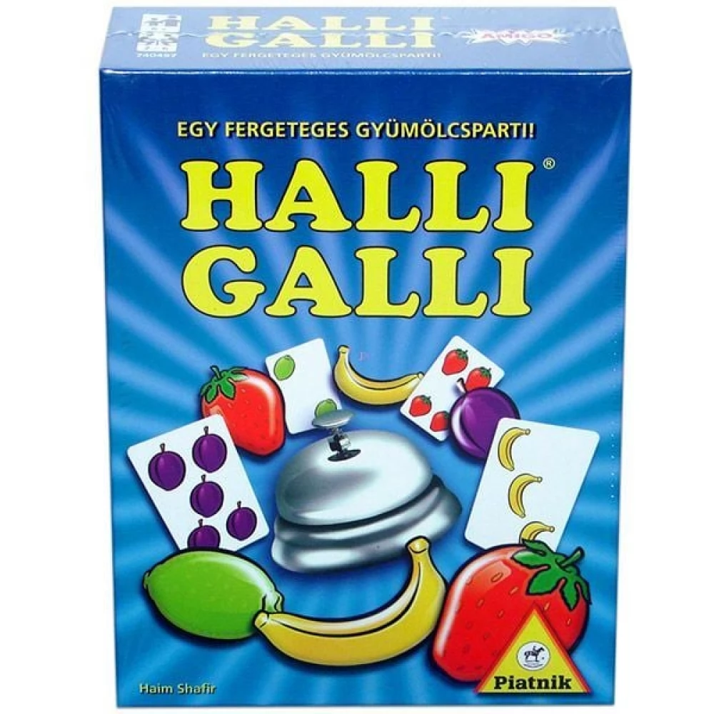 A Halli Galli játékban a játékosok sorban fordítják fel a kártyáikat. Amikor öt azonos gyümölcsöt látnak a felfordított lapokon, akkor megpróbálnak egymást megelőzve a csengőre csapni. Aki gyorsabban csap a csengőre, az elveheti az összes felfordított lapot. A Halli Galli játék győztese az lesz, aki elnyeri a játékostársai kártyáit.