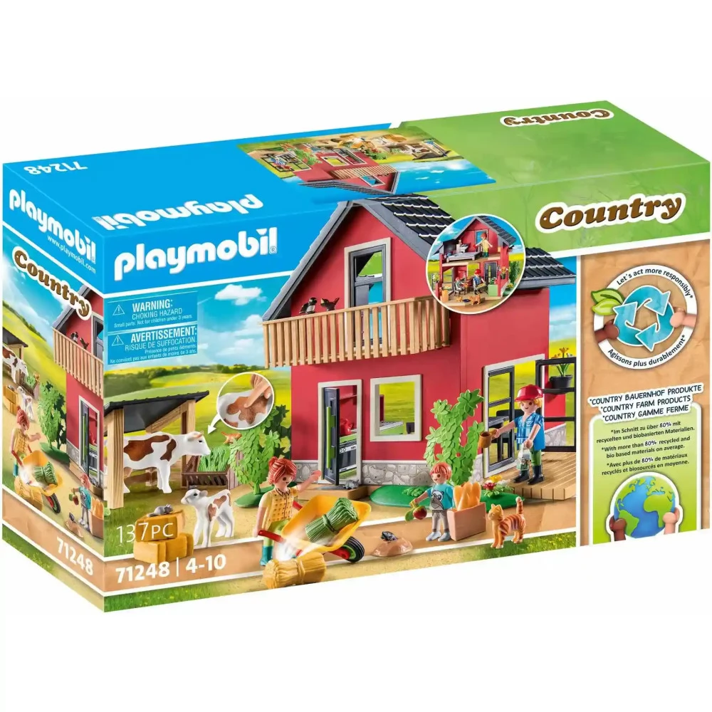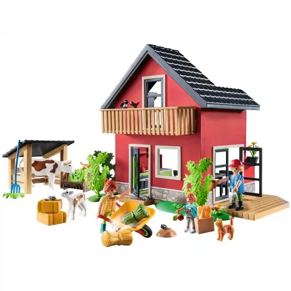 A Playmbil farm témavilága remek szórakozást kínál a természetszerető gyerekeknek. Az egész család otthon érzi magát ebben a barátságosan berendezett parasztházban, hangulatos nappalival és hálószobával. A földszinten található kis terasz pihenésre és kikapcsolódásra csábít. Az istállóban lévő teheneket és borjakat, valamint a ház körüli további állatokat is naponta gondozzák. A tehén foltjai puha szőrrel vannak borítva, amelyeket kellemes megsimogatni.