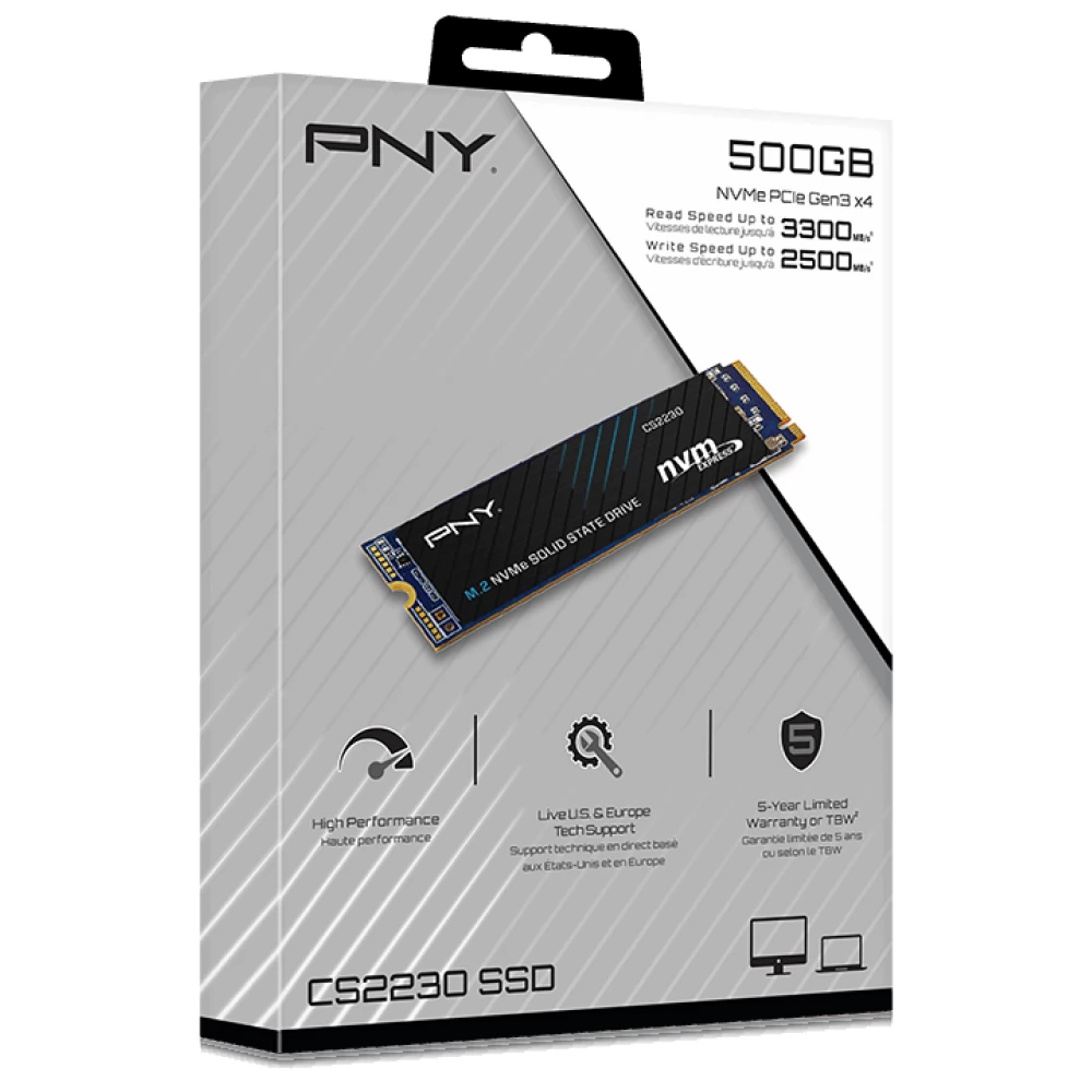 A PNY CS2230 NVMe SSD kiváló teljesítményt nyújt M.2 2280-as formátumban, 500 GB-os tárolókapacitással. Az NVMe interfésznek köszönhetően rendkívül gyors adatátviteli sebességet biztosít.