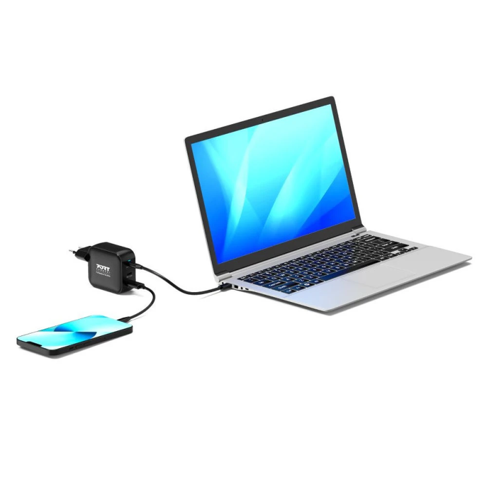 A PORT CONNECT GaN2 fali töltő modern GaN (gallium-nitrid) technológiával készült, amely kisebb méretet és hatékonyabb teljesítményt biztosít a hagyományos töltőkhöz képest. A 100 wattos összteljesítmény lehetővé teszi több eszköz egyidejű, gyors töltését.