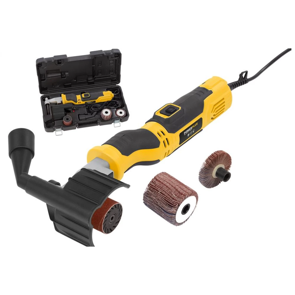 A Powerplus POWX04950 csiszolóhenger ideális csiszoló ívelt darabok és texturált felületek formázásához. Alkalmas ablak- és ajtókeretek, asztallábak csiszolására, valamint az összes lehetséges sarok, ív és egyenetlen felület elérésére. Ezenkívül a fém sorjázására is használható. A 310 W-os motor 3000 perc -1 fordulatszámot biztosít .