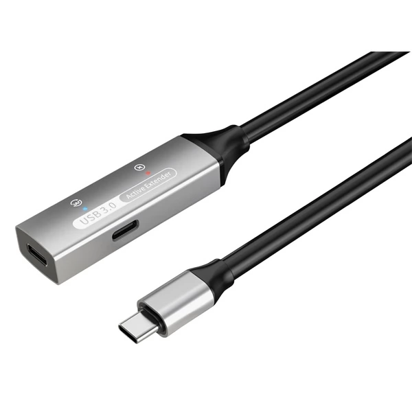 Fekete színű, 10m hosszú USB 3.0 Type C - USB 3.0 Type C Hosszabbító kábel.