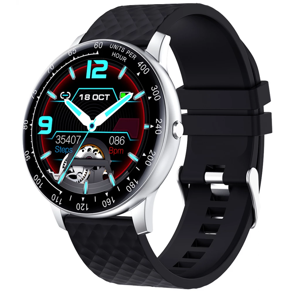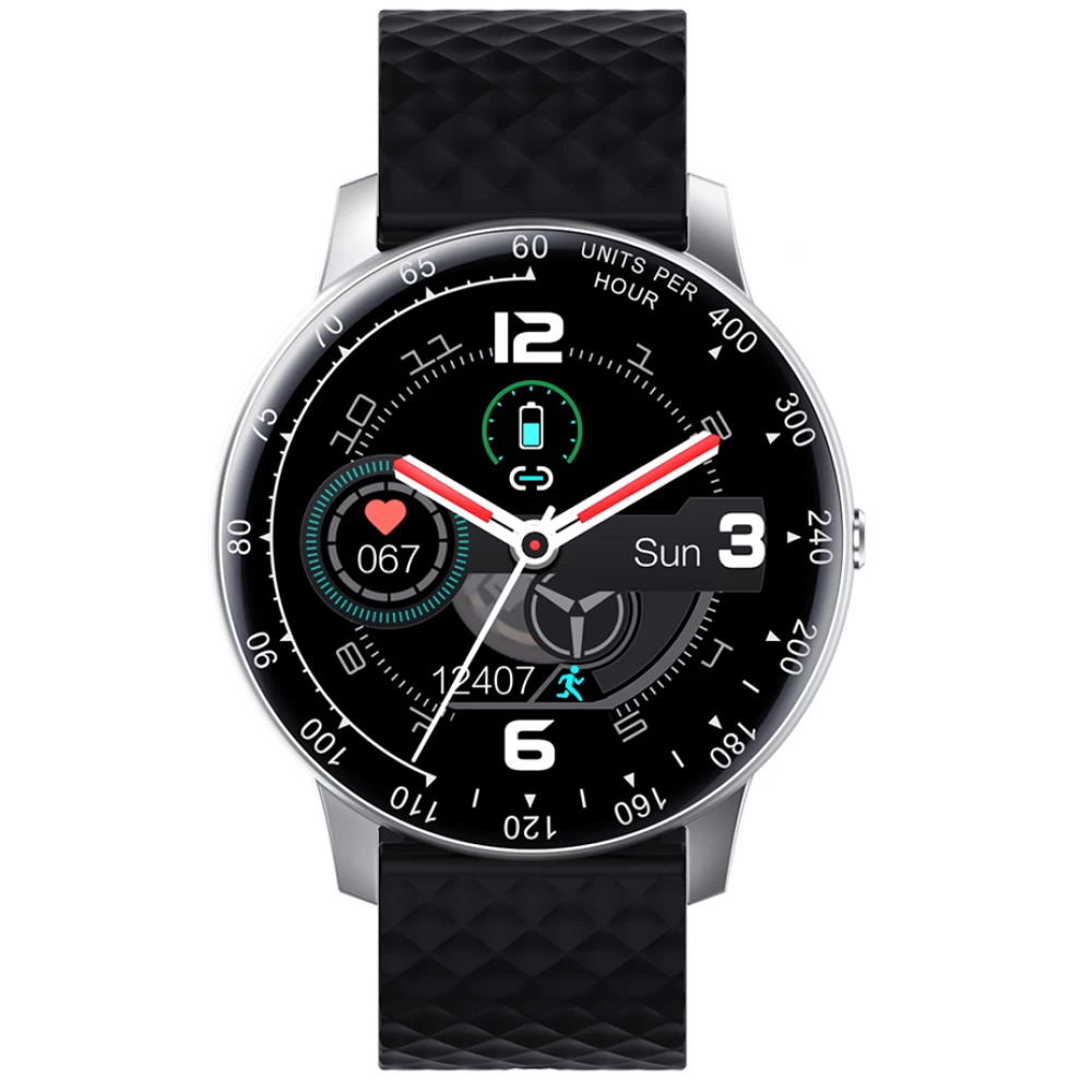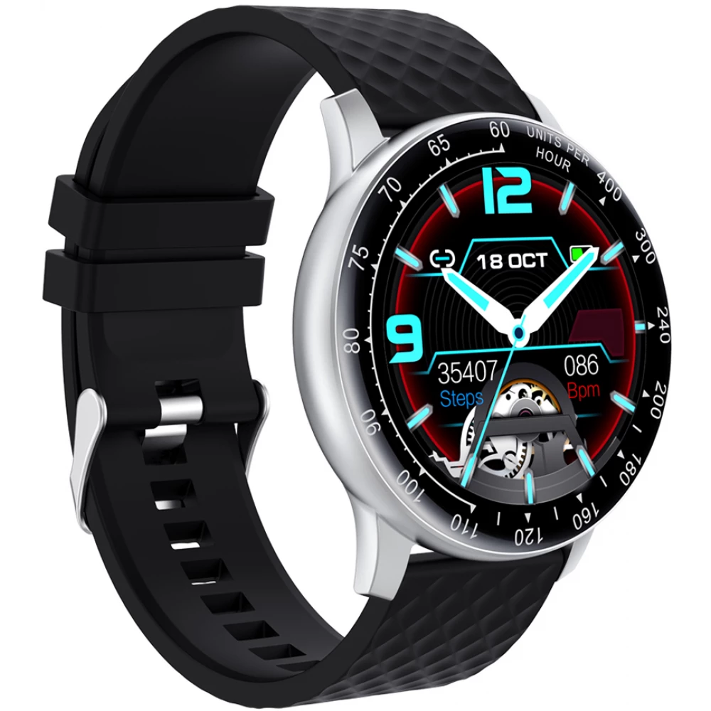 ProWear H30 pulzus- vérnyomás- és véroxigénmérő multisport IP68 vízálló okosóra magyar nyelvű alkalmazással - Ezüst óraház fekete szíj