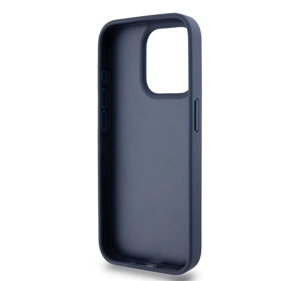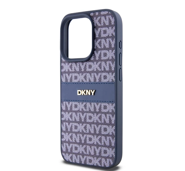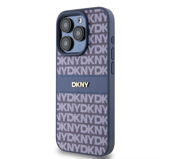 PU Leather Repeat Pattern Tonal Stripe iPhone 14 Pro hátlap tok, kék