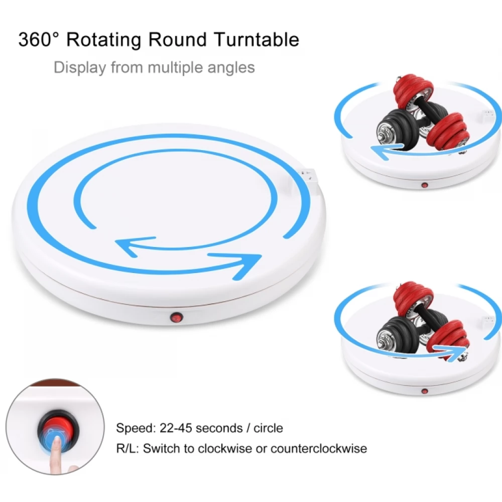 Állványt keres ékszereinek, óráinak, kézitáskáinak, esetleg autómodell-kollekciójának bemutatására? A Puluz 45 cm átmérőjű forgatható állványa remekül illeszkedik otthonába, akár kirakatba vagy fotóstúdióba. A készülék 360 fokban forog, hangereje pedig nem haladja meg az 50 dB-t. A mellékelt távirányítóval kényelmesen vezérelheti az állványt, a beépített tápcsatlakozó pedig remek megoldás ha olyan tárgyat fényképez ami tápellátást igényel.