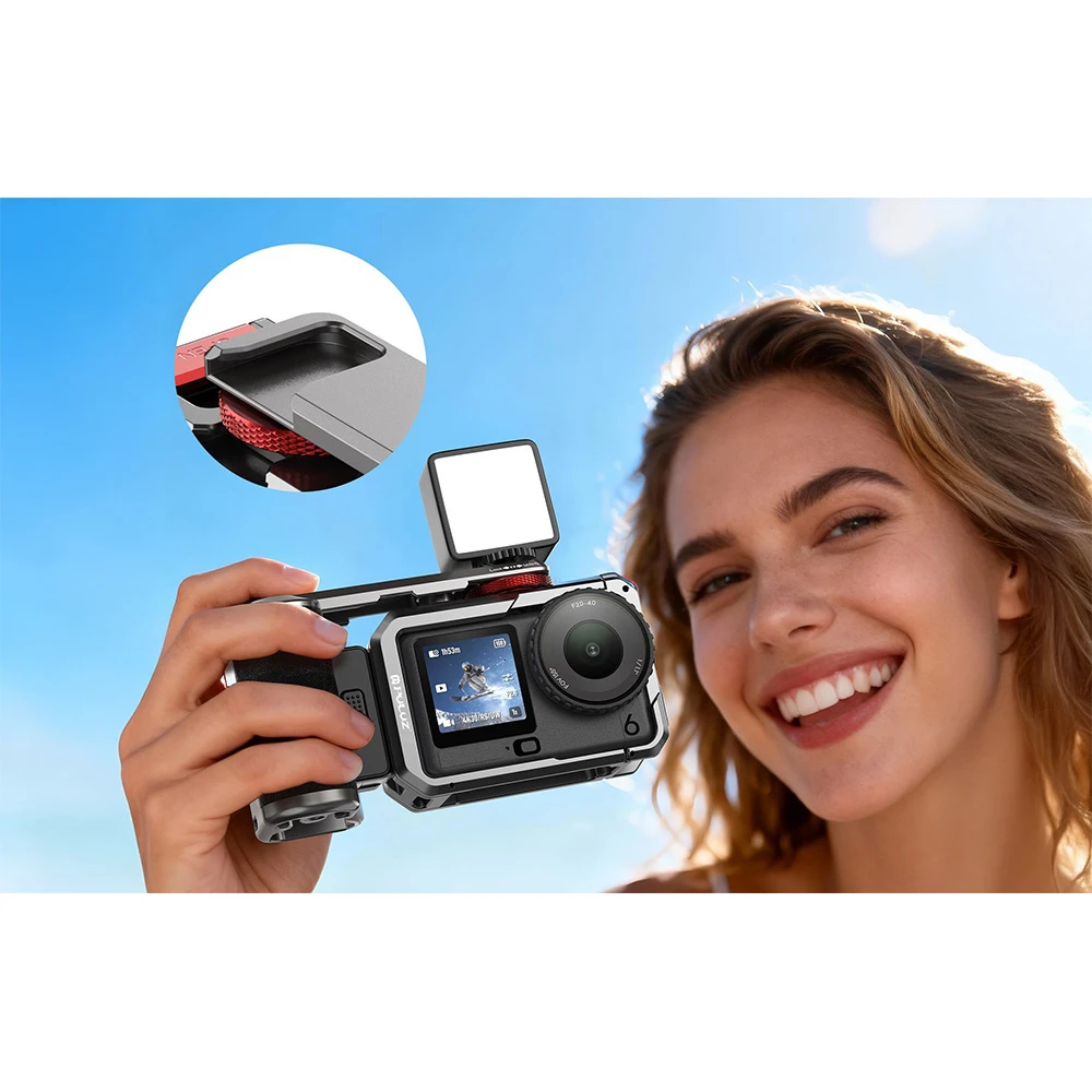 A ketrecet kifejezetten a DJI Osmo Action 6 készülékhez tervezték, így tökéletesen illeszkedik a kameratesthez, megvédve azt a karcolásoktól, ütődésektől és az esések hatásaitól. A kiváló minőségű, repülőgép-ipari alumíniumötvözet merevséget és rugalmasságot biztosít, míg a puha, csúszásmentes markolatbélés a hosszú felvételek során is biztonságosan a kezedben tartja a kamerát. Az ergonomikus kialakítás csökkenti a kéz fáradtságát, és lehetővé teszi, hogy kizárólag a vázra összpontosítson.