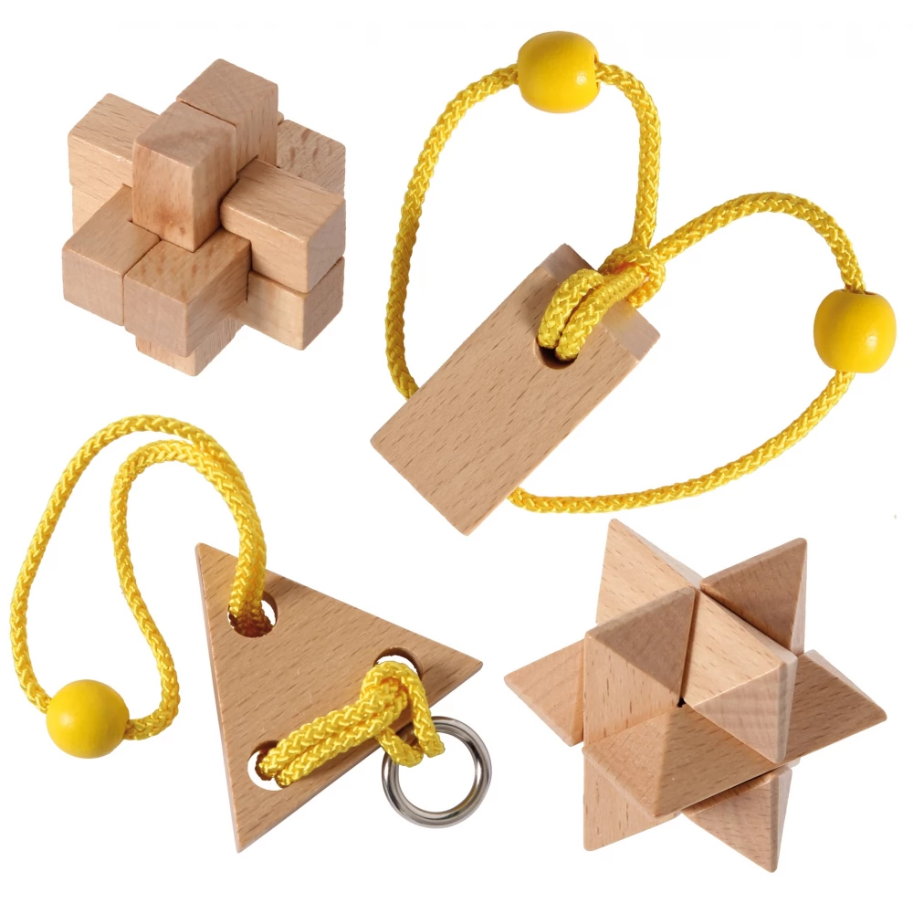 A készlet 4 darab fa ördöglakatot tartalmaz, ami tapasztalt játékost igényel.