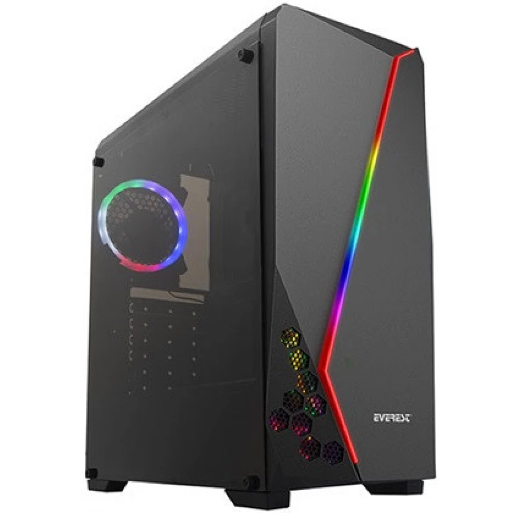ATX formátumú Midi-torony kialakítású számítógépház RGB látványelemekkel.
