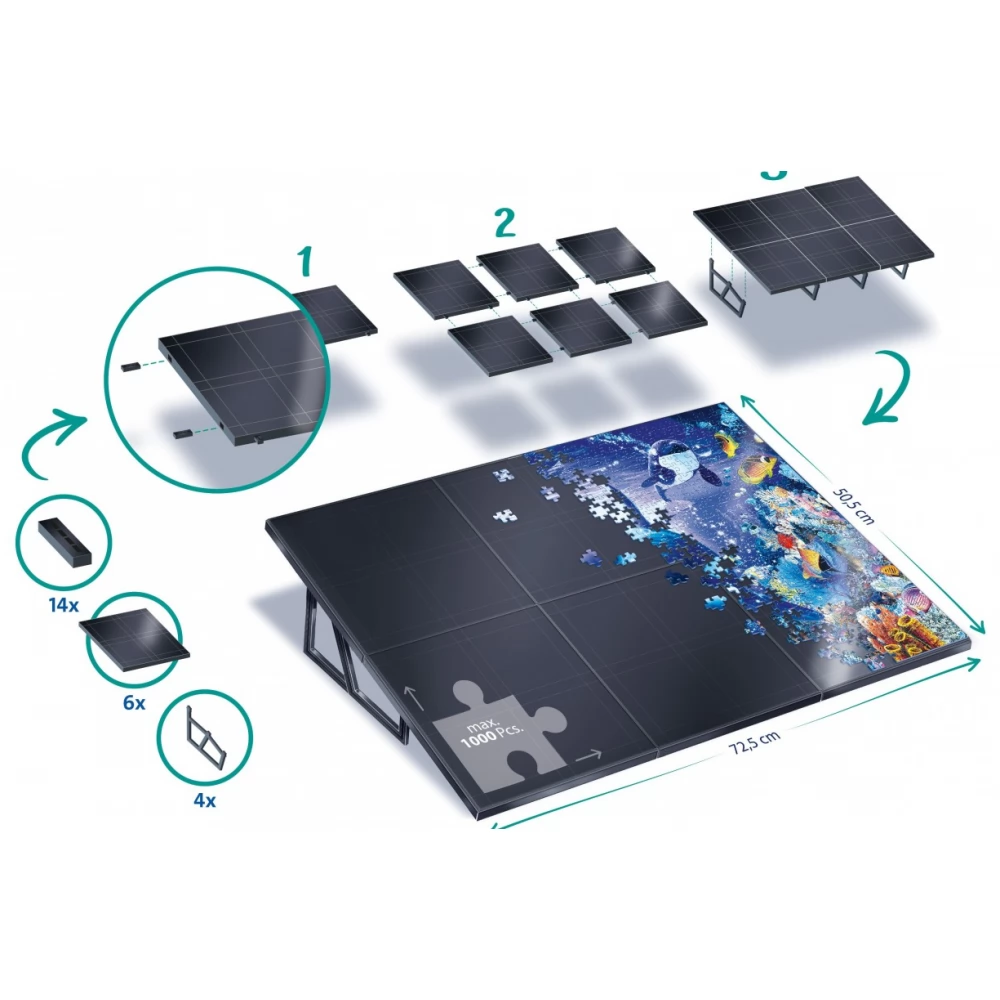 Puzzle tartó állvány, mellyel kényelmesebbé válik a kirakós játék. Mérete: 72 x 51 cm ~ 1000 darabos puzzle-ek számára.