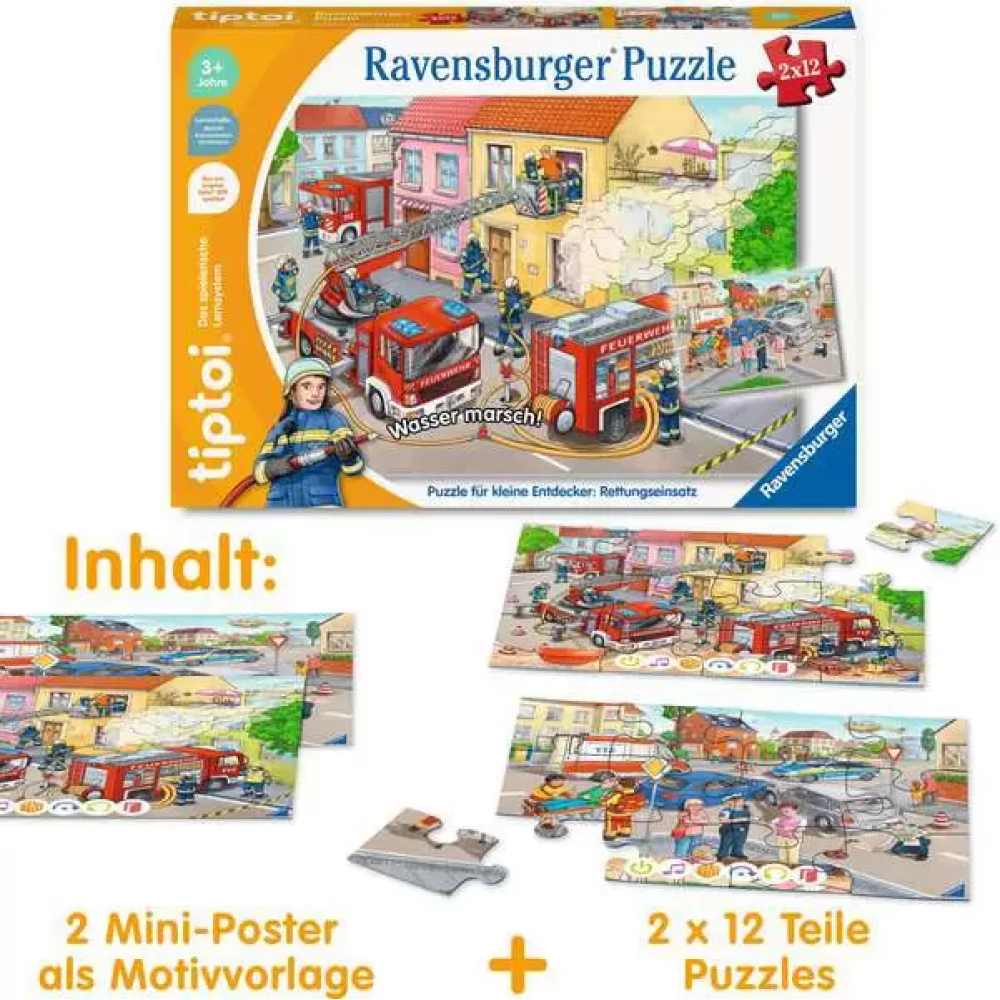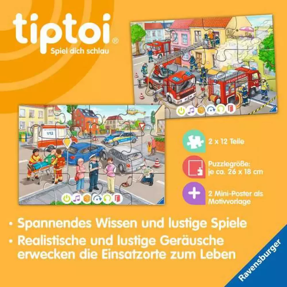 RAVENSBURGER TIPTOI puzzle játék 2x 12 darabos Tűzoltók bevetésen NÉMET nyelvű
