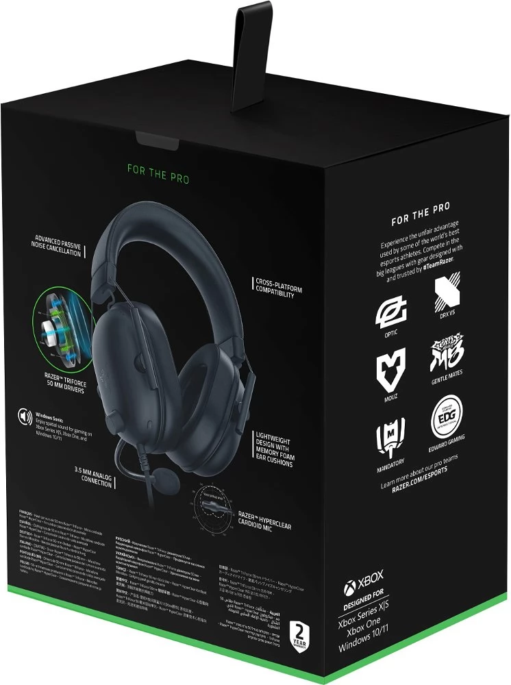 A Razer BlackShark V2 X headset a lenyűgöző hangzás, a kiváló mikrofontisztaság és a profik által is elismert, kiváló hangszigetelés tökéletes kombinációja. Könnyű, fémvázának köszönhetően strapabíró, a párnázott fejpánt pedig kényelmes viseletet garantál akár hosszabb ideig tartó használat során is.