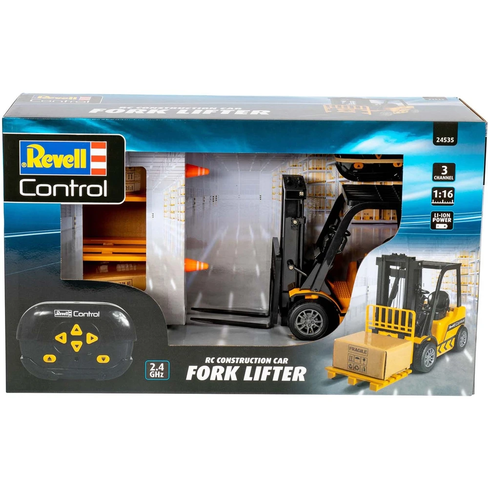A Revell távirányítós targonca izgalmas játékélményt nyújt 8 éves kortól. A részletesen kidolgozott modell 2,4 GHz-es rádiós vezérléssel rendelkezik, amely stabil és pontos irányítást biztosít akár 50 méter távolságból is.