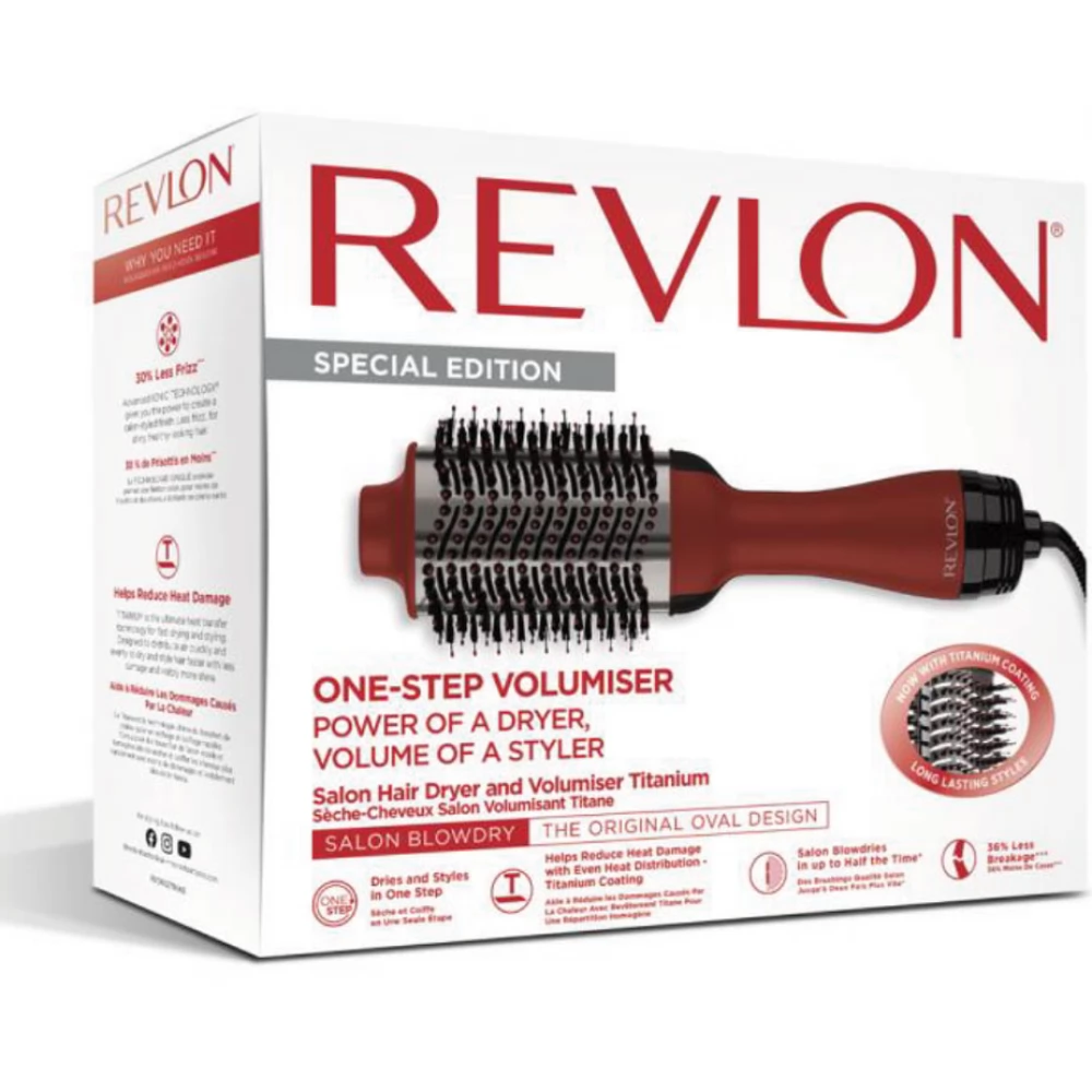 A Revlon Special Edition egylépéses Volumiser Titanium elektromos kefe titán bevonattal egy új modell, prémium változat . Az ecset gyorsan szárad, sérülés nélkül, a gyökér térfogata és gyönyörűen hullámos tippek szalonhatással.
