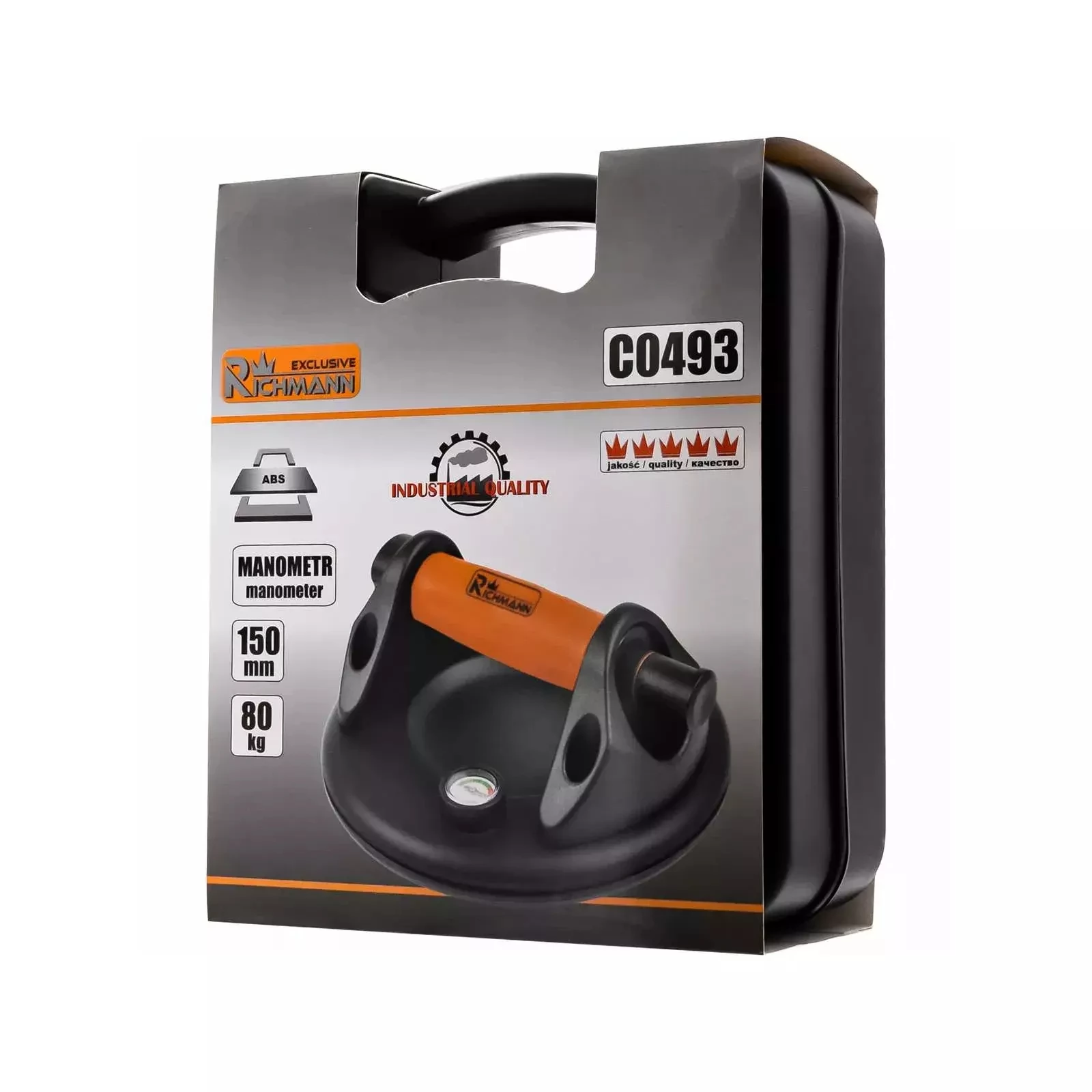 Kiváló minőségű egykezes tapadókorongos emelő nyomásmérővel, olyan iparágakban, mint például: karosszéria és fényező műhelyek, csempézés, üvegművek, asztalosipar, ipar stb.