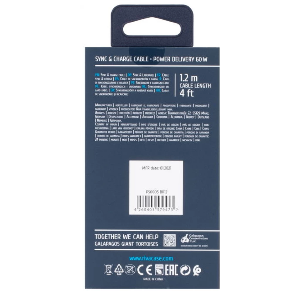 RIVACASE USB 2.0 Type C Összekötő Fekete 1.2m 4260403579473