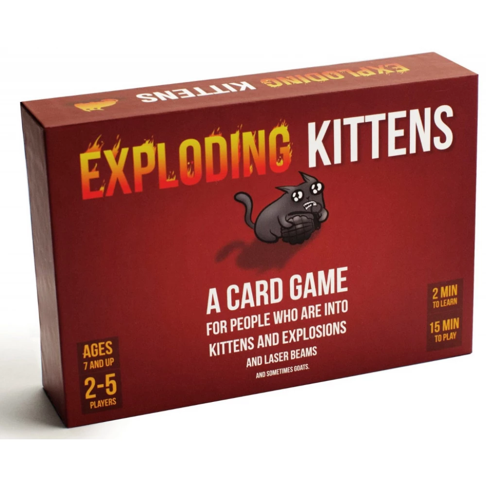 Na vajon van-e cica a húzópakli tetején? Nincs hatástalanításom… Inkább bevetek egy Ugrást! A Robbanó cicák egy kártyapakliba oltott orosz rulett: minden játékos köteles húzni egy lapot a köre után. Ha egy Robbanó cicát húz, kiesik – hacsak nincs ellenkártyája. Azt is megúszhatja, hogy lapot húzzon – ha van erre szolgáló kártyája. Lapot húzhatunk mástól, szívathatjuk, vagy védekezhetünk a szívatás ellen… amíg fel nem robbanunk! Egy könnyed és vidám kártyajáték, ami addig tart, amíg egyvalaki meg nem ússza a sok robbanást!