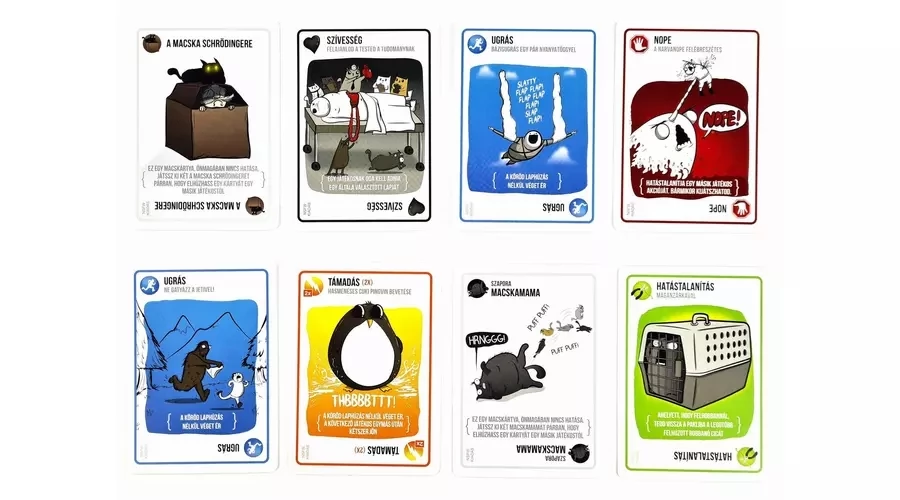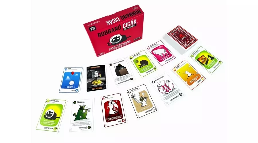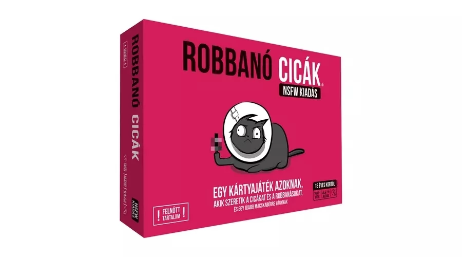 A Robbanó cicák - NSFW pörgős és vicces extrém partijáték. Ebben a társasjátékban a játékosok meg akarják úszni, hogy robbanó cica kártyát húzzanak a pakliból. Ezért ravasz trükköket vetnek be: lapokat csennek egymástól, megakadályozzák kártyák kijátszását, a megfelelő pillanatban újrakeverik a paklit...