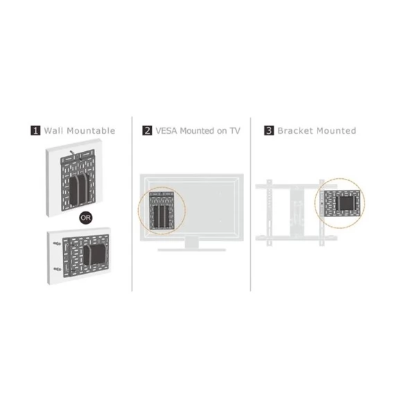 - Három beépítési lehetőség: falra szerelhető, VESA TV-re szerelhető és konzolra szerelhető