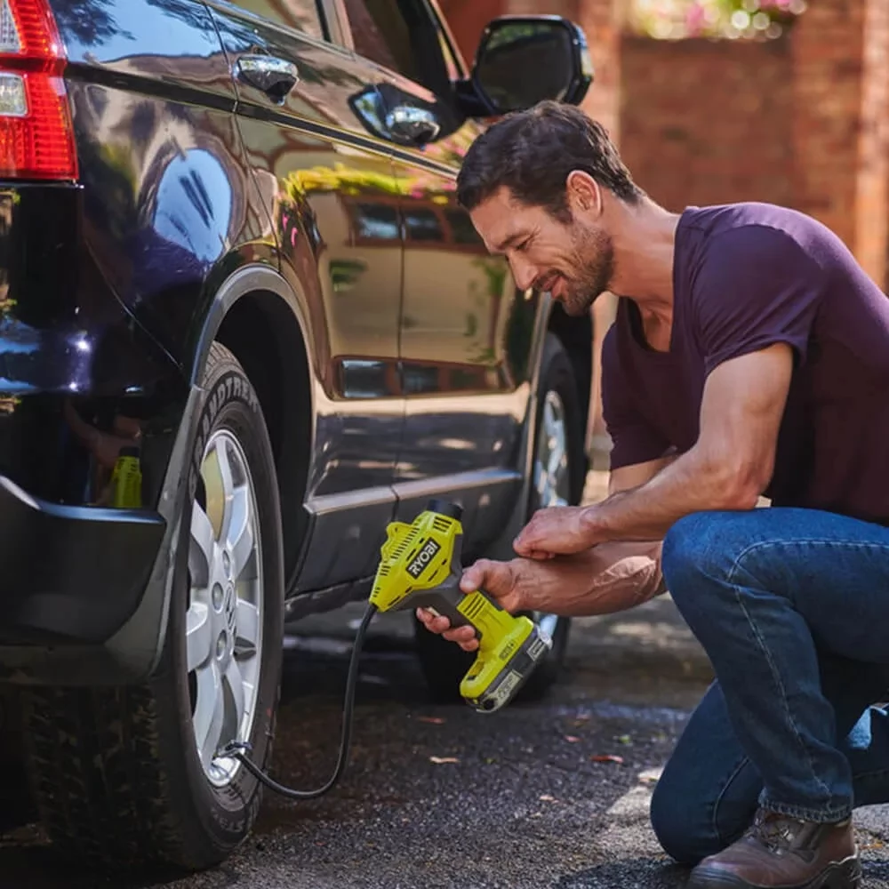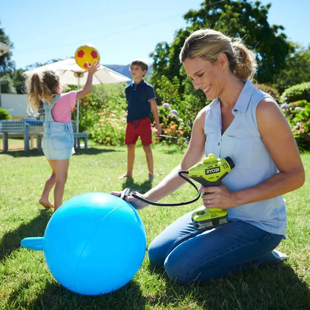 A Ryobi R18PI-0 egy 18 V-os akkumulátoros nagynyomású pumpa, amely ideális autó, kerékpár gumiabroncsok vagy sporteszközök gyors és hatékony felfújásához. Akár 150 PSI (10,34 bar) nyomásra képes, és 16 liter/perc légáramlással dolgozik, így például egy autógumit 2 percen belül 32 PSI-re fúj fel. A pumpa áttekinthető nyomásmérővel rendelkezik a pontos nyomás beállításához, valamint különböző fúvókákat tartalmaz, amelyek a csomagban kényelmesen tárolhatók. A 50 cm-es tömlő kényelmes elérést biztosít, a készülék súlya akkumulátorral együtt 1,1 kg, akkumulátor nélkül csak 0,6-0,7 kg. A Ryobi ONE+ rendszer részét képezi, így más 18 V-os Ryobi akkumulátorokkal is kompatibilis.