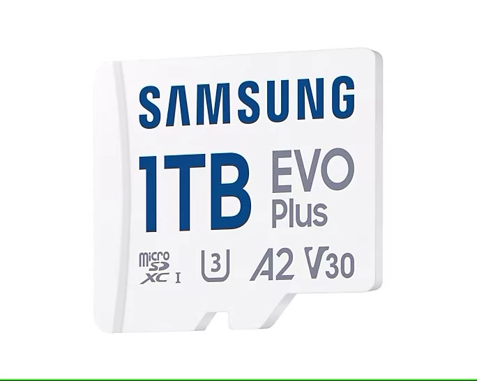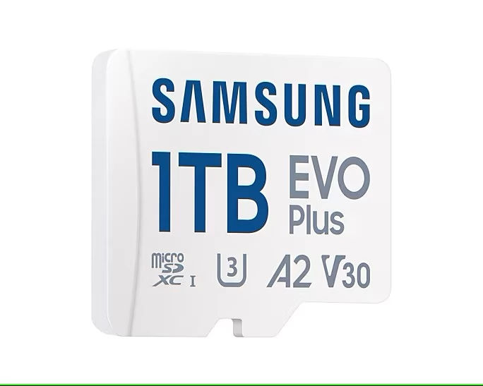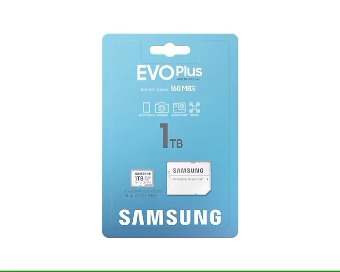 A Samsung EVO Plus 1TB kapacitású microSDXC memóriakártya kiváló választás okostelefonokhoz, táblagépekhez és egyéb kompatibilis eszközökhöz. UHS-I interfészt alkalmaz, akár 160 MB/s olvasási sebességgel, U3, V30 és A2 sebességosztályú besorolással, ami gyors adatátvitelt és megbízható alkalmazásteljesítményt biztosít.