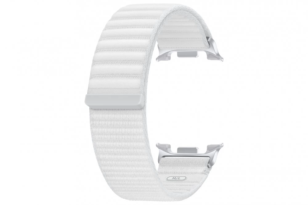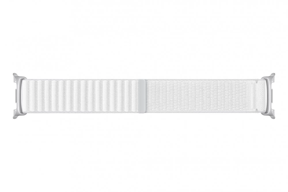A szövet szíj a tartós kényelmet biztosító műanyagot és a kontúros illeszkedést biztosító tépőzárat ötvözi, így a Galaxy Watch8 szíjak közül a legkönnyebb. Kialakítása puha és légies tapintású, így hosszabb ideig is könnyen viselhető. A kényelmet fokozó sima textúrájával kellemes viselési élményt nyújt.