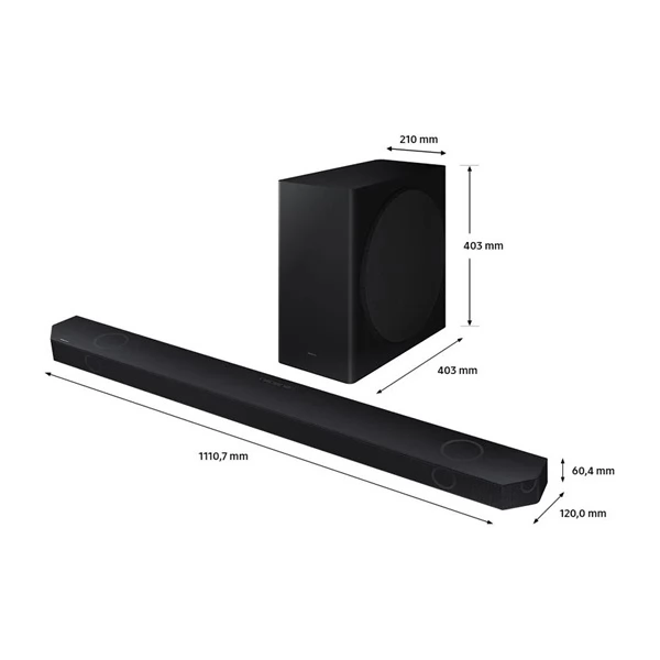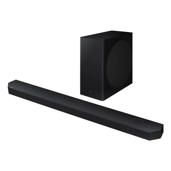 A tévékészülék hangszóróinak hangminősége gyakran nem olyan jó, mint azt a hallgató elképzelné. A hangprojektor olyan filmélményt nyújt, mintha moziban ülnél. A TV-hez tervezett Samsung hangprojektor a legjobb hangminőséget nyújtja játék, zenehallgatás vagy filmnézés során. 360 W-os teljesítményének és 5.1.2 csatornás kialakításának hála elvarázsol a tiszta hangzásával. Az elsőosztályú szélessávú hangsugárzók akármilyen hangot tökéletesen adnak vissza. A kitűnő minőségű vezeték nélküli aktív subwoofer egyedi és tiszta basszust biztosít. Ezen Samsung hangprojektor problémamentesen lejátssza a következő térhangzás formátumokat: dolby Atmos, dolby TrueHD és dolby Digital Plus. Bluetooth és Wi-Fi technológián keresztül más készülékekkel is összeköthető. A mellékelt távvezérlővel kényelmesen irányíthatod. Távirányító, iOS és Android rendszeren futó eszközökkel is kezelhető.