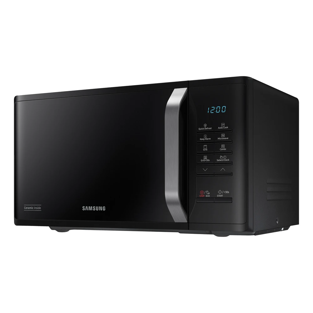A Samsung MG23K3523AK/E2 beépíthető mikrohullámú sütő elegáns fekete kivitelben, amelyet konyhai beépítésre terveztek. A készülék 23 literes belső térfogattal rendelkezik, így ideális kisebb és közepes méretű ételek melegítéséhez, főzéséhez.