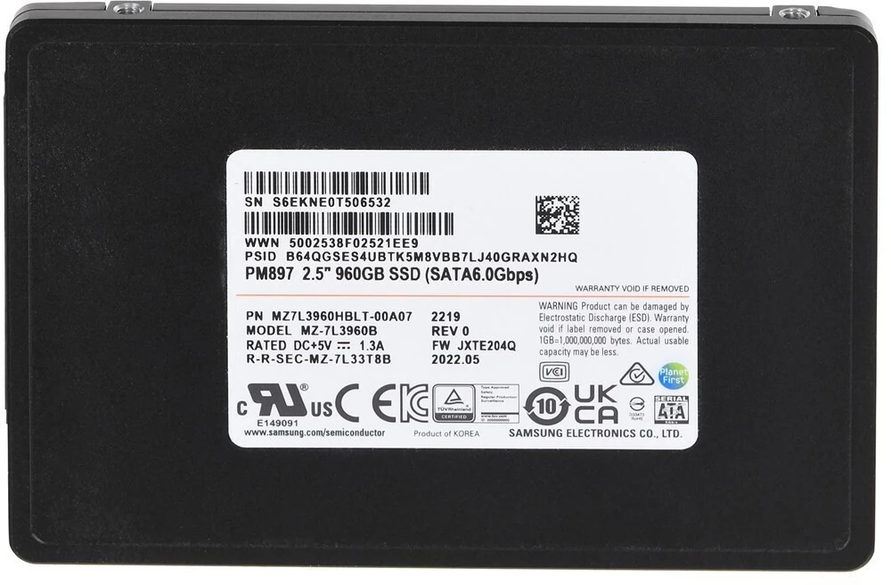 SAMSUNG PM897 Datacenter 2.5" SSD 960GB MZ7L3960HBLT-00A07
