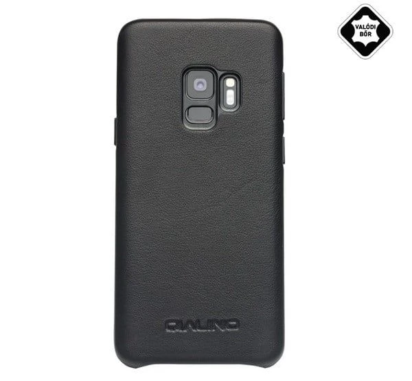 Samsung S9 QIALINO műanyag telefonvédő valódi bőr bevonat FEKETE