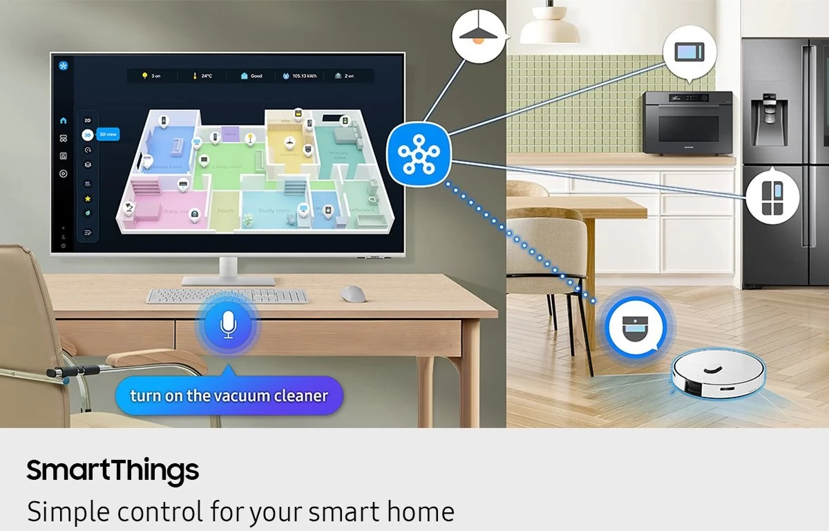 Alakítsd Smart Monitorodat otthonod vezérlőközpontjává azáltal, hogy a SmartThings segítségével összekapcsolod IoT otthoni termékeiddel! Lazíts a fények lekapcsolásával, a redőnyök lehúzásával és a termosztát tökéletes hőmérsékletre állításával, mindezt a Smart Monitor segítségével, egy tökéletesen nyugodt este érdekében.