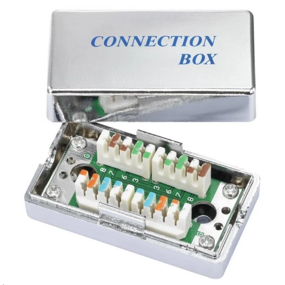 A csatlakozódoboz lehetővé teszi két STP Cat5E kábel csatlakoztatását a Cat5E paraméterek megőrzése mellett.