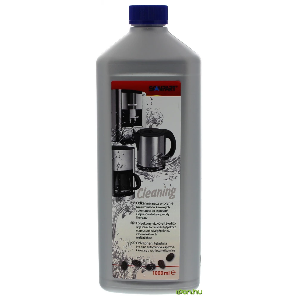 A legtöbb kávéfőzőnek van beépített vízkőmentesítő programja. Ezt a folyadékot négyszeres víz mennyiséggel hígítva, az üres víztartályba kell önteni.