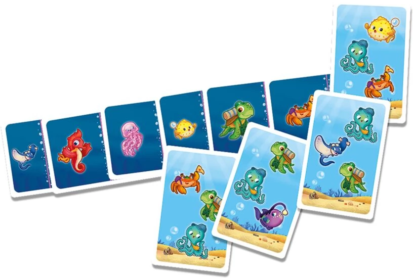 Sok minden történik a víz alatt! Minden kártyán három vicces tengeri lény található. Le tudod tenni a kártyáidat úgy, hogy mind a négy paklira ugyanazok az állatok kerüljenek? A szerencse és az ügyes kártyarakás jó keverékével pontokat szerezhetsz, pontozókártyákat gyűjthetsz az állatsorodhoz, és a végén a leghosszabb sorral akár nyerhetsz is!