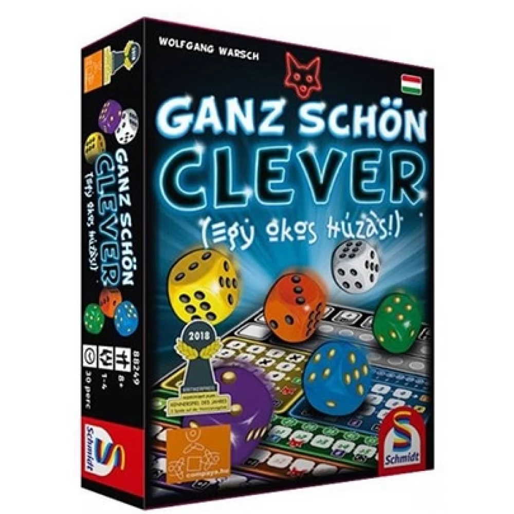 A Ganz Schön Clever - Egy okos húzás! egy gondolkodós, taktikázós, számolgatós társasjáték. Válassz körültekintően egy kockát és jelöld meg a megfelelő színű helyet a pontozóterületen. A jól kiválasztott kockával egy halom pontot szerezhetsz. Azonban vigyázz a választással, mert a megmaradt kockákat a többiek felhasználhatják! Gyűjts minél több pontot, és került el, hogy a többiek kihasználjanak!